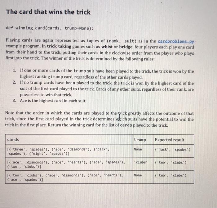 Solved The Card That Wins The Trick Def Winning Card Cards Chegg Com